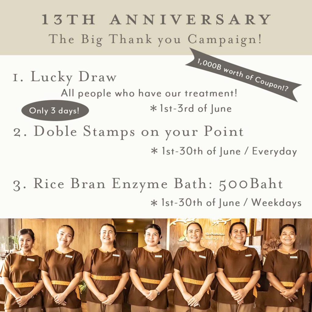 *スクンビット39 マッサージ & スパ店:米ぬか酵素風呂以外のトリートメントのご提供。