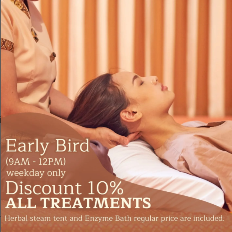 今月は、全ての施術が対象の10%早割プロモーションを実施中です✨毎日午前中、マッサージトリートメント、スパトリートメント、米ぬか酵素風呂、ハーバルスチームテントの弊店のトリートメントがすべてお得になります。ぜひ朝から心身の調子を整えて充実した一日をお過ごしください🌿 😊