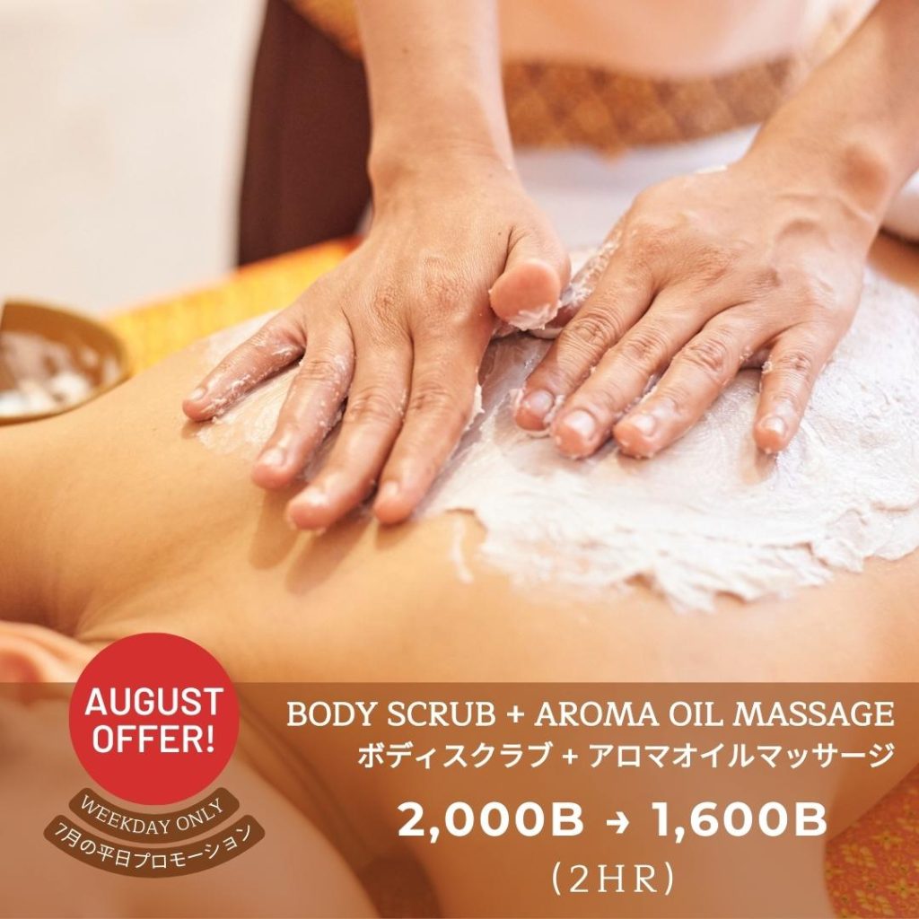 また、アロマオイルとスクラブクリームは、タイハーブを使ったアロディア社の最高級ナチュラルプロダクト。