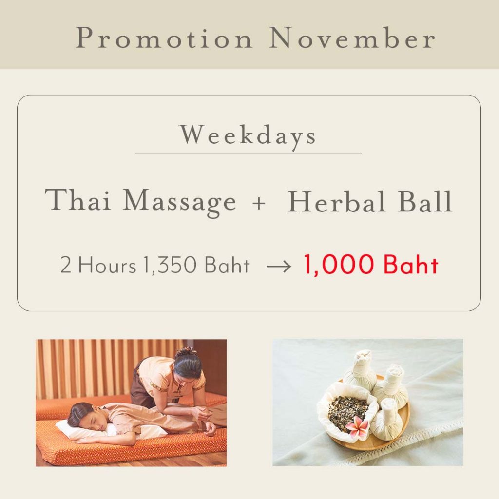 コットン布に包んだ数種類のタイハーブを蒸し、体に押し当てマッサージしていきます。